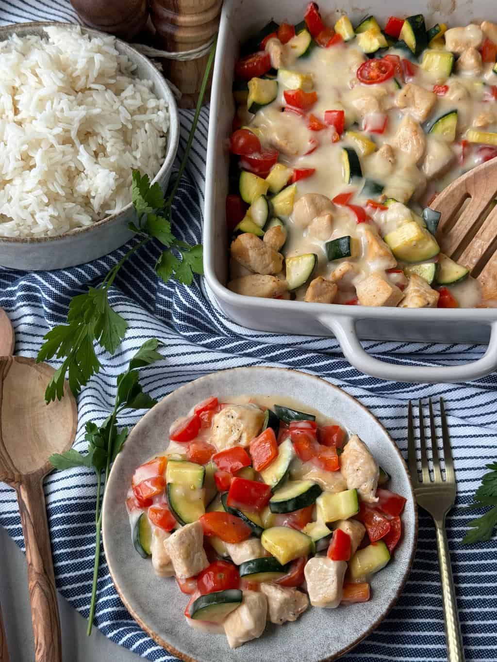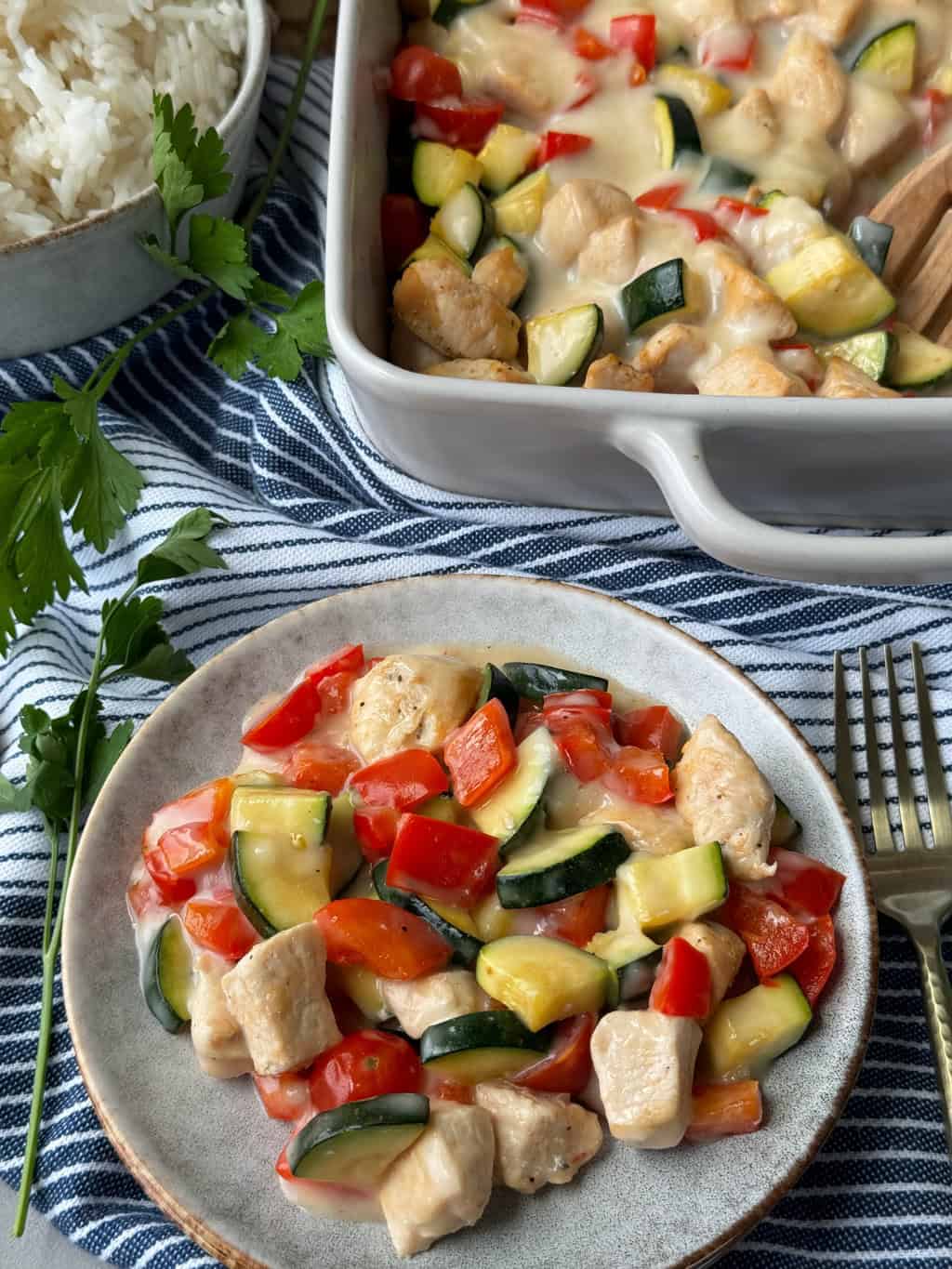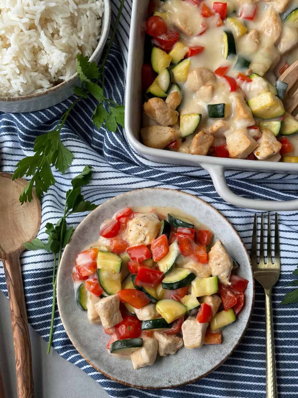 Serve this easy chicken zucchini casserole over rice, cauliflower rice, or with any of your favorite side dishes.
