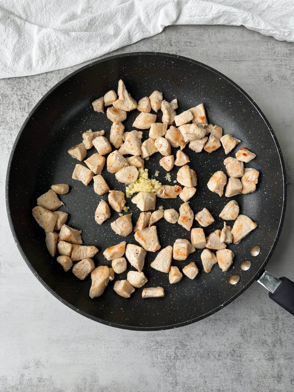 When the chicken is cooked add the minced garlic and cook for another 1-2 minutes.